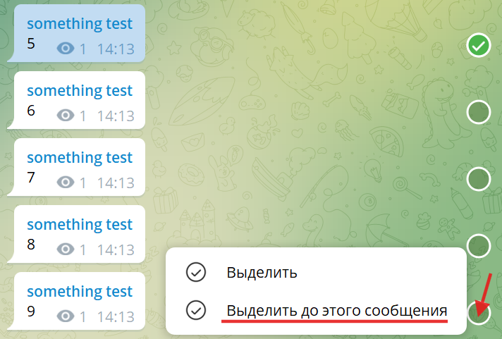 - Отмотайте на 80-90 постов вниз и нажмите "Выделить до этого сообщения":